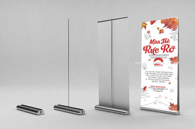 Các loại Standee cuốn đều có 2 kích thước tiêu chuẩn là 60×160 và 80x200cm.