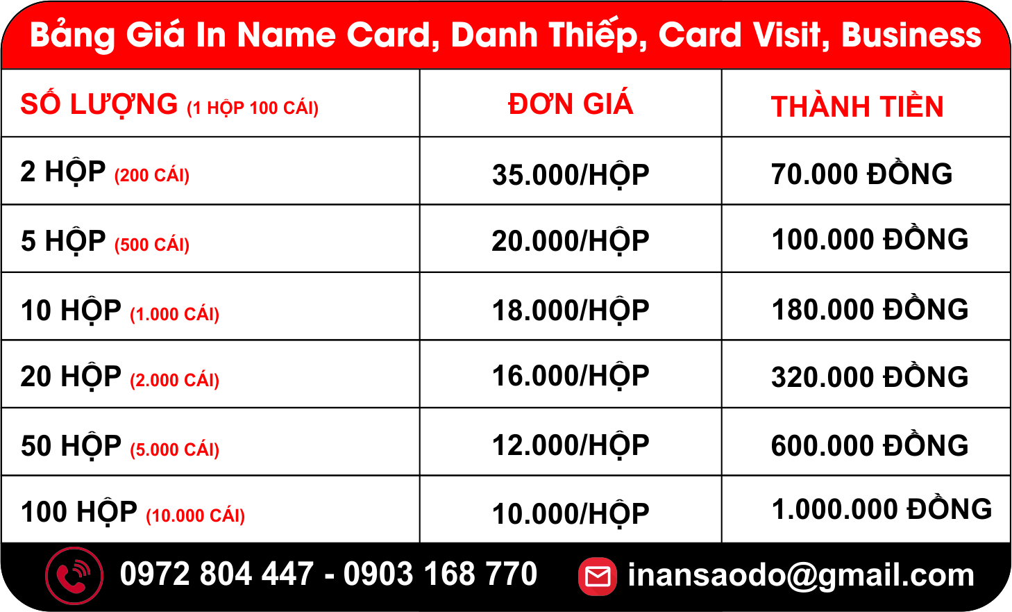 Ngoài kích thước này thì cũng có khách in kích thước lớn hơn như : 55mm x 180mm, 90mm x 110mm ( card đôi, card hai )