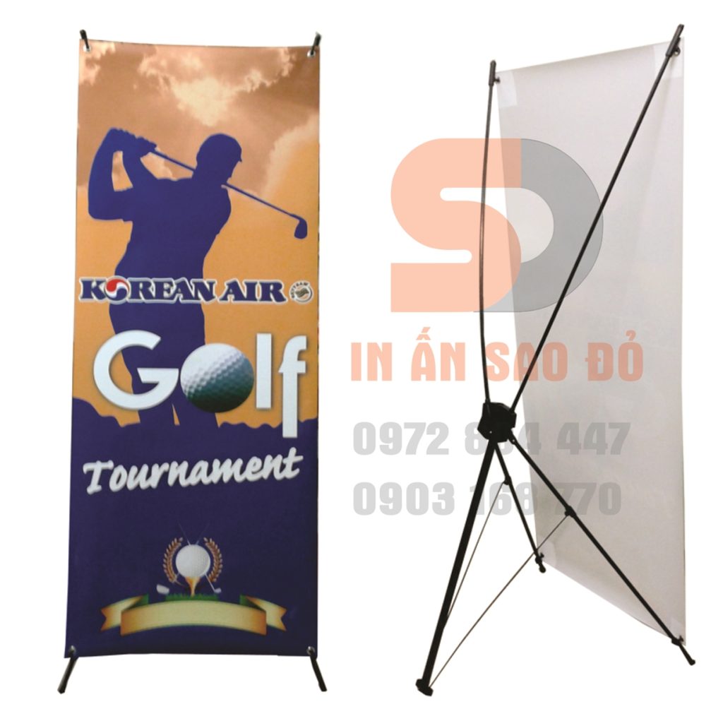 – Bước 4: Cuối cùng bạn lắp tấm banner, bản in sẵn có vào standee. Khi lắp tấm banner bạn hãy thực hiện lắp theo thứ tự vào 4 móc từ trên xuống dưới. Và sau khi lắp xong bạn hãy đặt standee X vào nơi trưng bày.